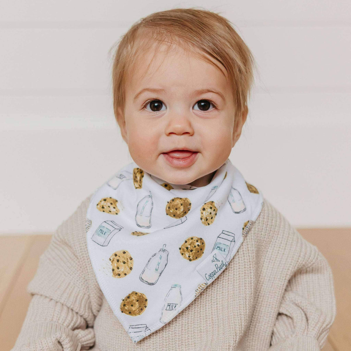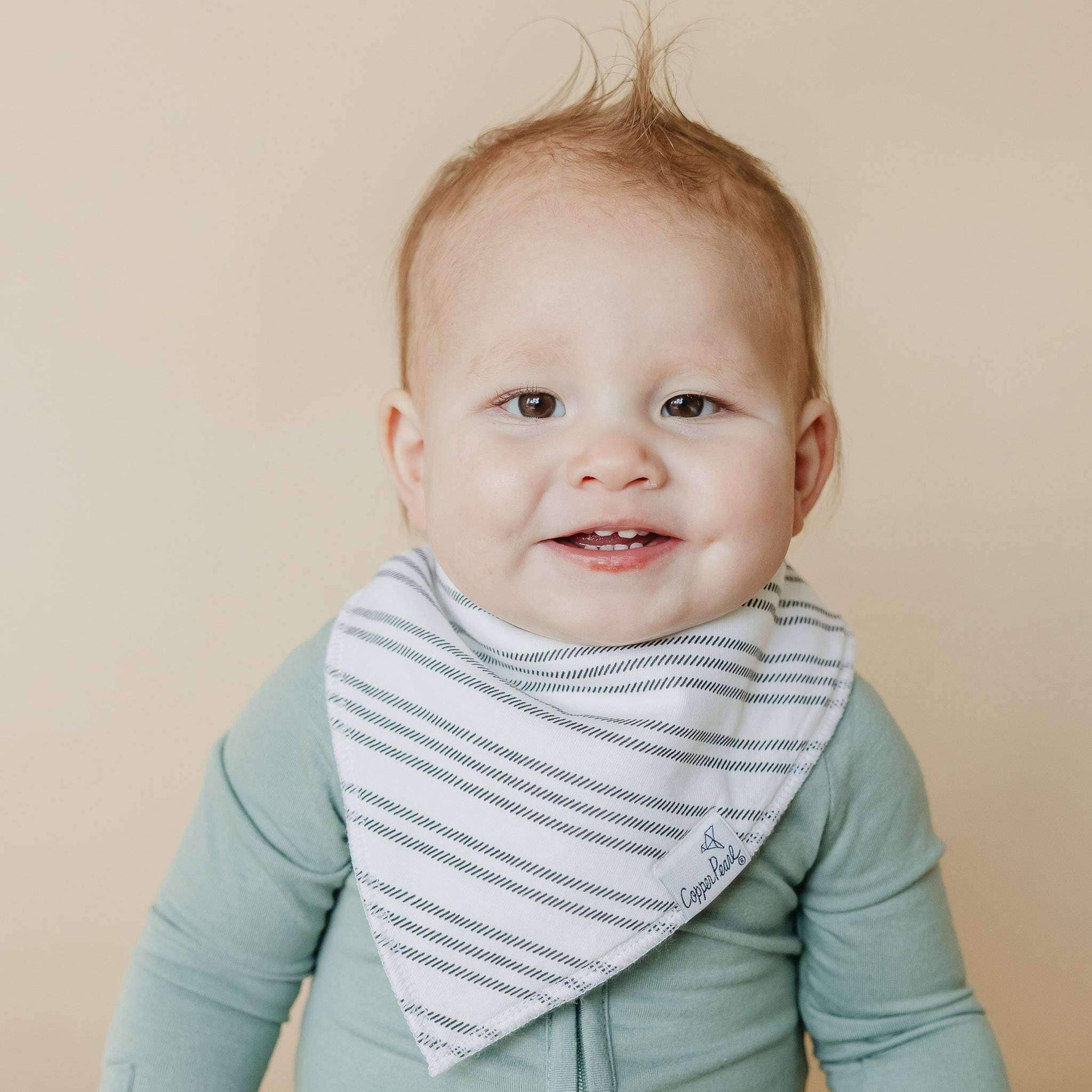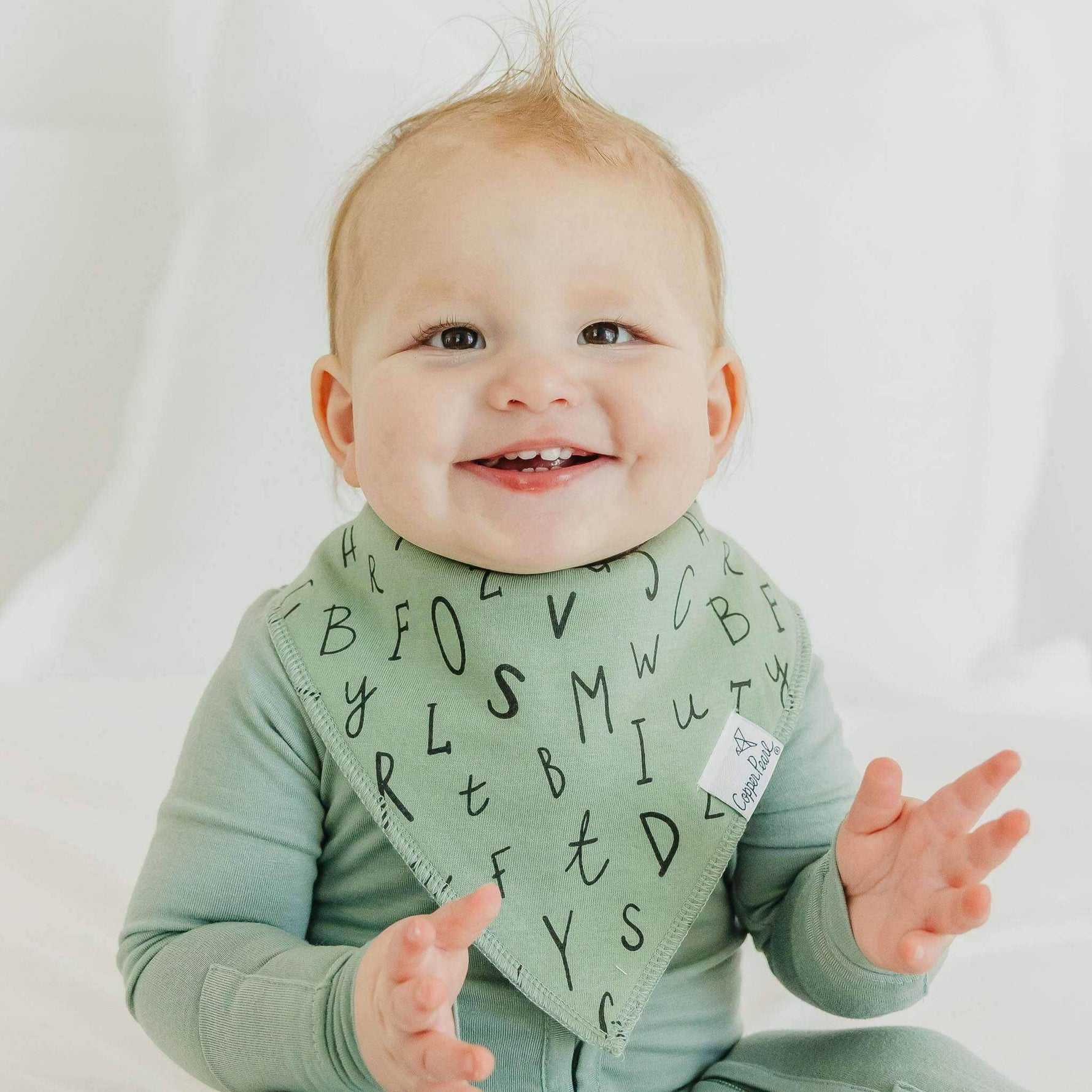 * Absorbent cotton drool bib * These stylish drool bibs are made of 100% absorbent cotton on the front and 100% polyester fleece on the back. The front of the baby bib is a stylish knit fabric and the back is a super soft fleece that keeps your baby completely dry even with the drooliest of babies. Great for teething babies! * Adjustable nickel-free snaps for ages 3-36 months * Each baby bandana bib comes with 2 nickel-free snaps that allow each bib to be adjustable in size to fit newborns and toddlers, with ages ranging from 3-36 months. The snaps are secure, making it difficult for infants and toddlers to unfasten but are easy for parents to snap on and off. * Trendy and stylish baby fashion accessory * Our bandana bibs feature our own custom and unique designs that are trendy and fashion-forward. They're versatile and are the perfect finishing touch for any outfit. * Unique baby gift set * Our 4-pack of baby bibs makes the best gift for new parents, new grandparents, baby showers, christmas p