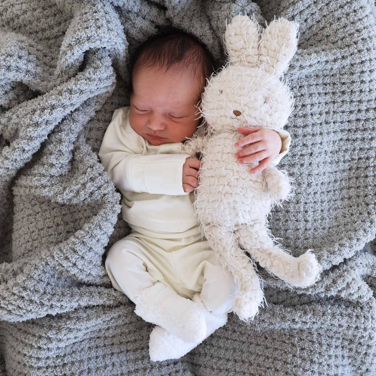 Keep your little one's toes cozy and cute with our 3-pack of fuzzy baby socks! Featuring a light baby blue, a classic white, and an adorable blue-and-white striped pair, these soft crew socks are perfect for keeping tiny feet warm all day. Made of our signature CuddleLane™ fabric, your newborn will love wearing these socks during naptime, running errands with mom, or while sporting their brand new outfit at the hospital during their very first photos. Whether they're wiggling, crawling, or snoozing, these fuzzy socks add a touch of sweetness to any outfit while keeping those precious toes toasty!