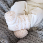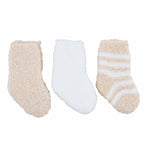 Keep your little one's toes cozy and cute with our 3-pack of fuzzy baby socks! Featuring a solid tan, a classic white, and an adorable tan-and-white striped pair, these soft crew socks are perfect for keeping tiny feet warm all day. Made of our signature CuddleLane™ fabric, your newborn will love wearing these socks during naptime, running errands with mom, or while sporting their brand new outfit at the hospital during their very first photos. Whether they're wiggling, crawling, or snoozing, these fuzzy socks add a touch of sweetness to any outfit while keeping those precious toes toasty!