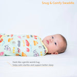 * The hook-and-loop closures ensure that this baby swaddle wrap stays securely in place, providing your baby with safe and comforting support. The adjustable sleep swaddle's wings envelop your baby snugly for a perfect fit every time.