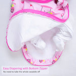 * The hook-and-loop closures ensure that this baby swaddle wrap stays securely in place, providing your baby with safe and comforting support. The adjustable sleep swaddle's wings envelop your baby snugly for a perfect fit every time.