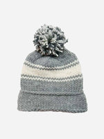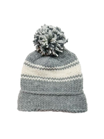 Go for the goal with our Sports Hat. This Light Grey beanie features a Cream stripe and a multi-colored yarn pom. Match with our Soccer Sweater or other sweaters.