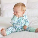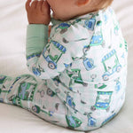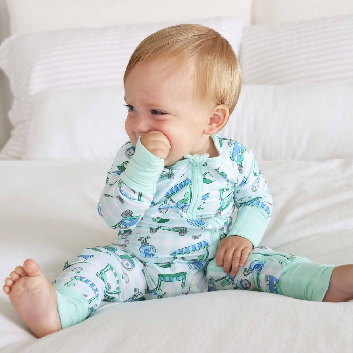 Convertible Zip Romper Details: * 95% Bamboo Viscose | 5% Spandex * Convertible Double Zipper Romper with flip mitts & footies (up to size 6-12 months) * Double Zipper for easy dressing & diaper changes * True-to-size, with extra room in the length to grow with baby * Includes: 1 Convertible Zip Romper (Accessories sold separately) Care Instructions: * Machine Wash Cold - Gentle Cycle * Phosphate Free Detergent Recommended for Color Care * Wash with like fabrics (bamboo only) * Should be washed inside out * Line Dry / Air Fluff * Do NOT use Fabric Softener From sunrise snuggles to post-round naps, our Birdie Babes Convertible Zip Romper is the ultimate pajama for your tiniest golfer!