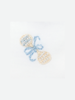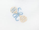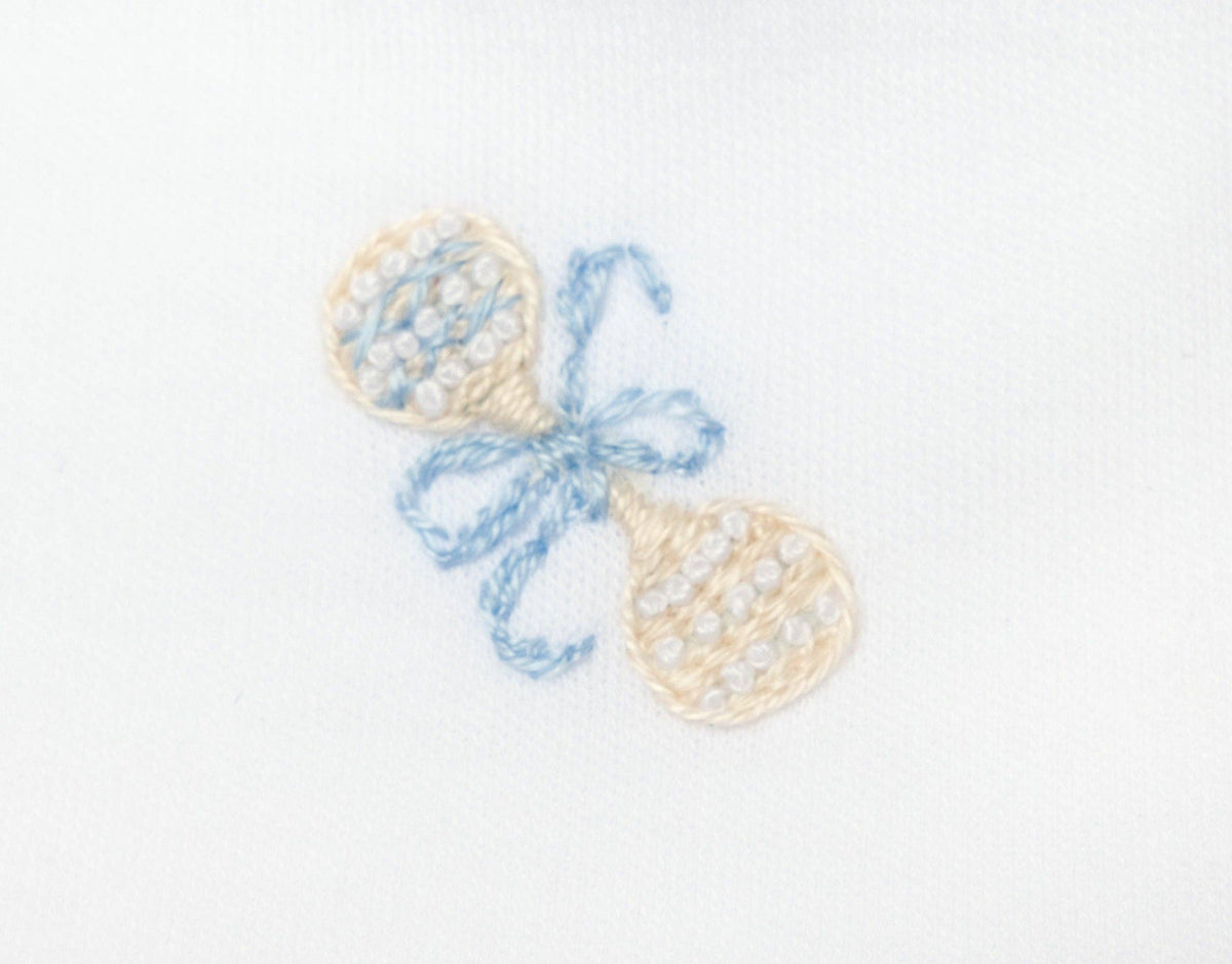 * Hand embroidered blue heirloom rattle with blue ribbon