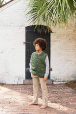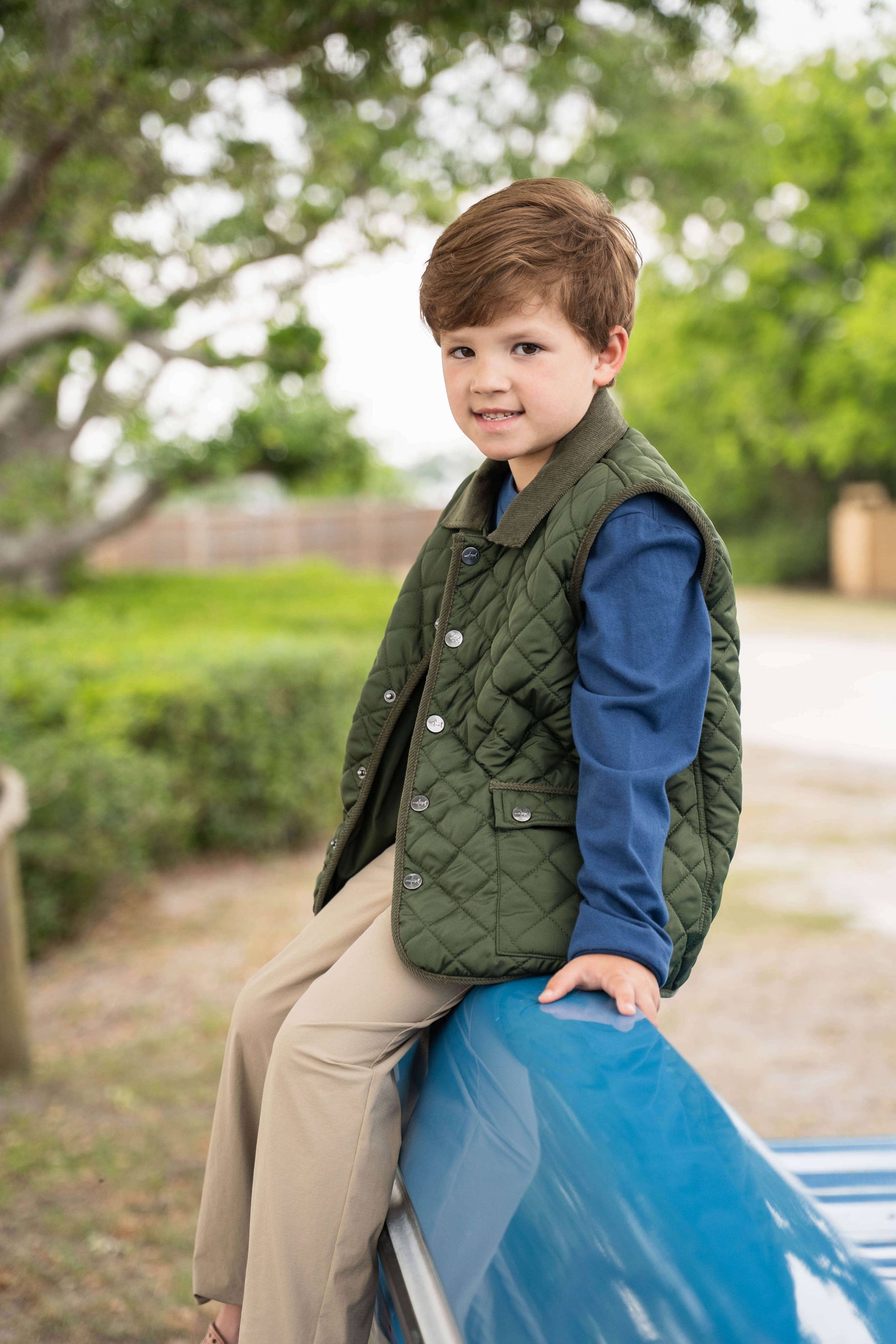 A top 20 best seller for Fall ’24 and ’25, the Derby Field Vest in Green keeps your little one warm and stylish all season long. Crafted from soft quilted fabric in a classic green, this snap-front vest features branded brass snaps, a cozy corduroy collar, and double pockets. Perfect for outdoor adventures or casual occasions. Inspired by the great outdoors, the Derby Field Vest is ready to join your child on every journey.