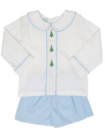 Get your little boy ready for the holiday season with our Charlie Blue Christmas Tree Short Set. Made of soft pique fabric, this set features festive embroidered trees for a sweet and classic style. Perfect for your little one to rock this Christmas!