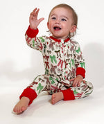 Our Zip Pajamas feature a two way zipper for easy diaper changes, convertible feet and scratch mitts for sizes 0-3 months and 3-6 months.