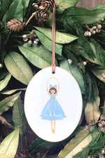 Little Girl Gift, Blue Ballerina, Dancers, Wooden Ornament