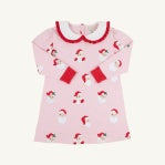 Introducing our Maude's Ruffle Cassidy Crewneck Dress! Featuring Dear Santa (Palm Beach Pink) with Worth Avenue White & Richmond Red, this dress is a must-have in your little girl's holiday wardrobe!