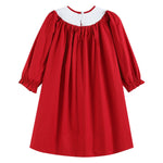 Festively Sweet! This beautiful bright and cheerful red-smocked bishop dress is detailed with cute Santa embroidery. Features buttons on the back for easy changing and is made in soft 100% cotton. The perfect outfit for meeting Santa or for your holiday dinners. Either way, your little cutie with be festive and picture-perfect for all of your holiday fun.