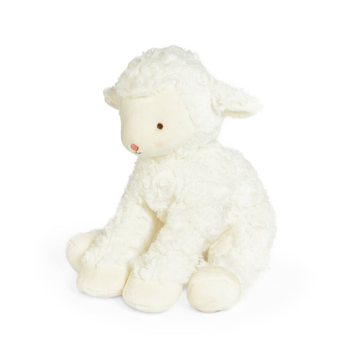 Features 14" extended, 8.5" sitting height Safe for all ages Embroidered features 100% polyester Surface wash/Spot clean 190183 pair with Kiddo Baa Baa Booties 101039 pair with Counting Peeps Book Almost twice the size, with even more to love, Kiddo is the big brother to Wee Kiddo, the little lamb stuffed animal that has won the hearts of people around the world. Just the right size to hug you back, this lamb stuffed animal features a soft coat of swirly, snuggle-down fur, and his paws and ears are lined with cozy white velour. It has a cute hand-embroidered face and rosy-pink cheeks.