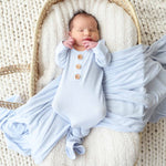 Ice Blue Bamboo Waffle Newborn Baby Knot Gown & Hat Set