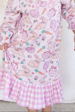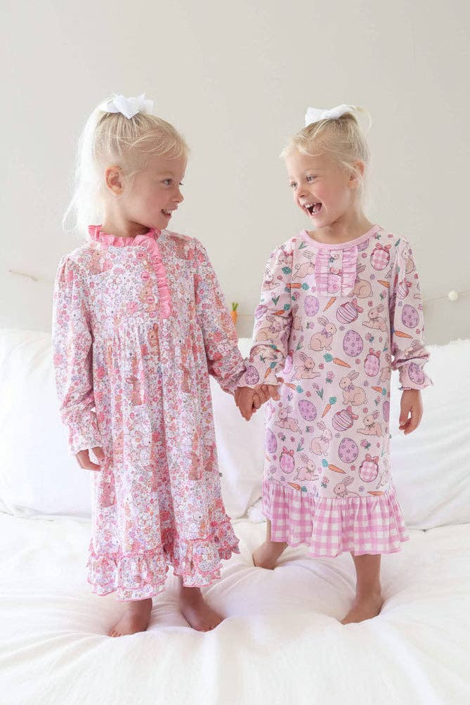 Hop into the coziest Easter nights with this nightgown! Designed with a soft, flowy fit and the sweetest springtime color, this nightgown is perfect for bedtime snuggles, Easter morning cuddles, and slow, cozy starts to the day. Made from ultra-soft, breathable fabric, it feels gentle on sensitive skin and keeps little ones comfy through the night. The long sleeves and full length silhouette add extra warmth for cooler spring evenings, while the relaxed fit allows plenty of room to move, stretch, and snooze peacefully. Perfect for Easter sleepwear, spring lounging, and all the sweet moments in between, this nightgown is a bedtime favorite parents and kids will both love.