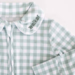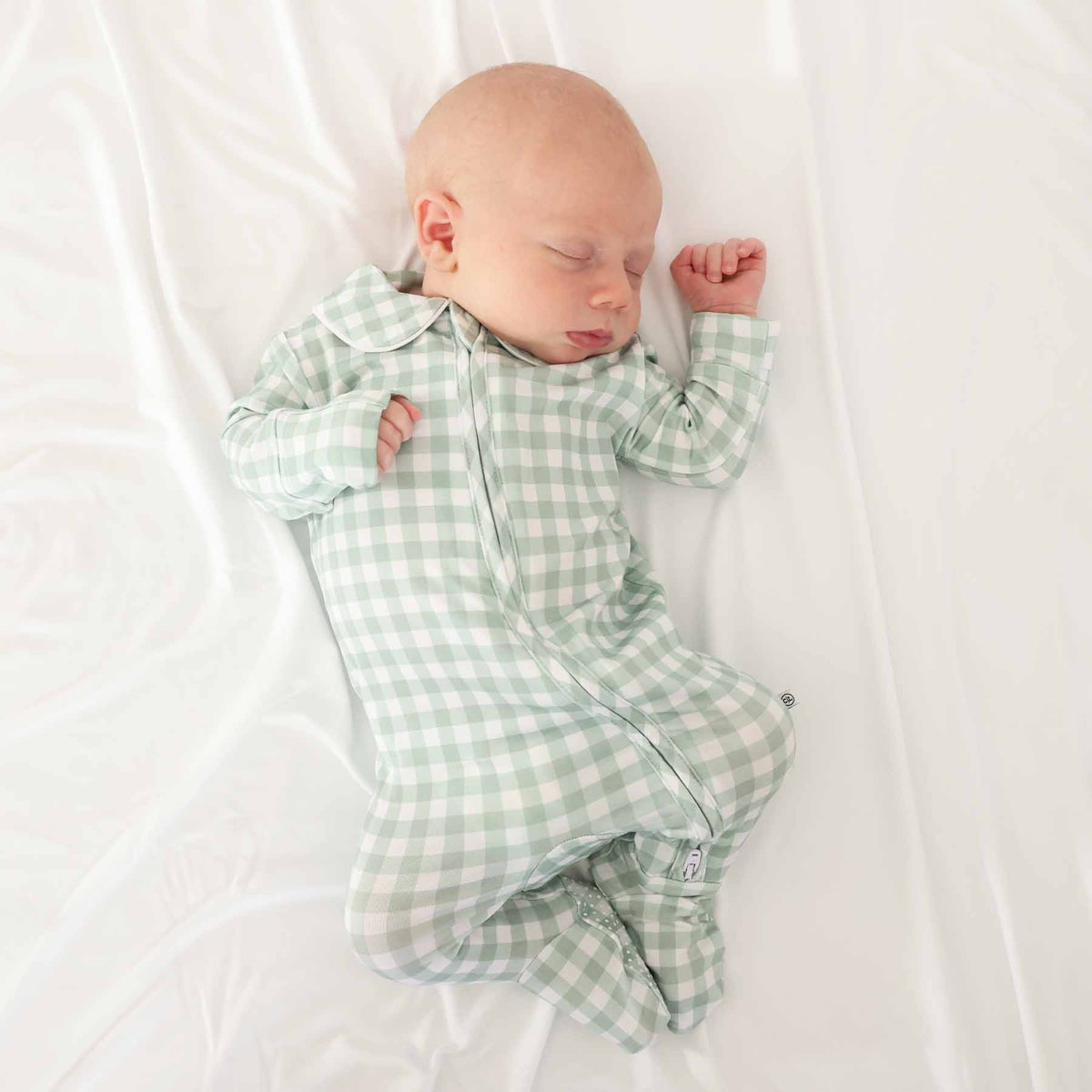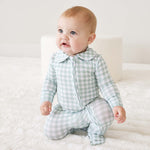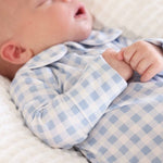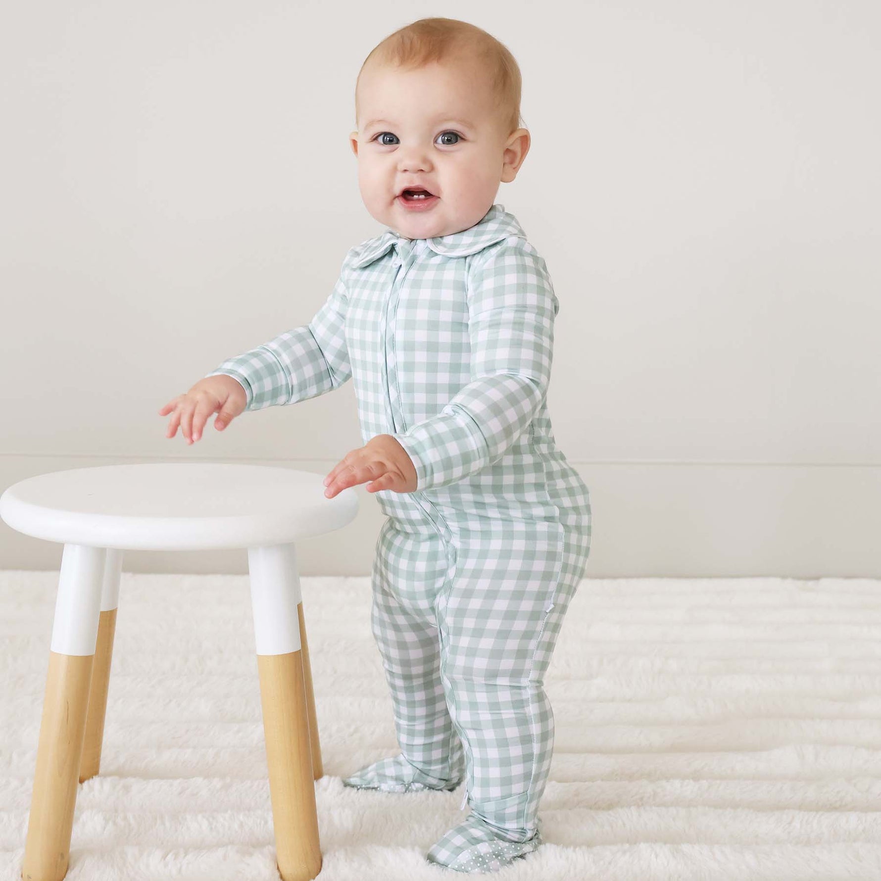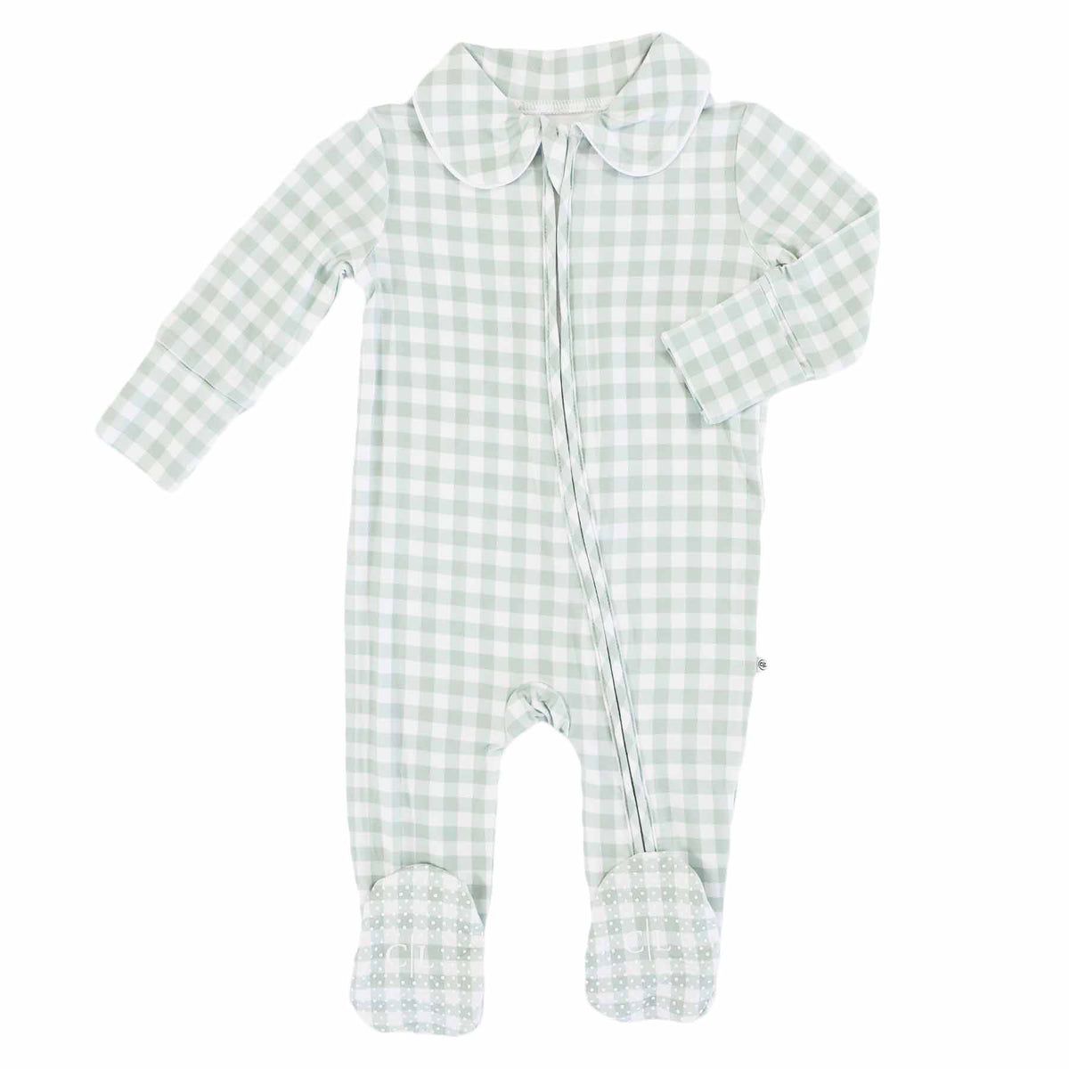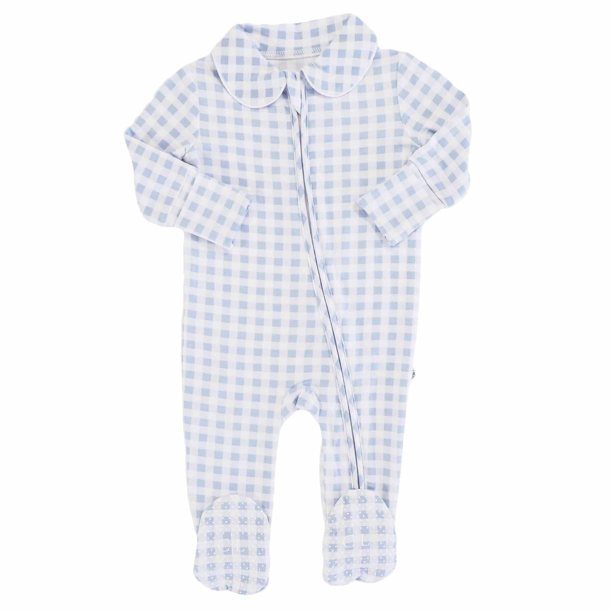 This extra cozy footie featuring the sweetest gingham print will have every parent falling even deeper in love with their little one! The full-length zipper makes it easy to dress your baby quickly, while also ensuring that the footie stays securely in place. The adorable peter pan collar brings the cutest twist to these pajamas. Made from high-quality bamboo viscose, this footie is soft and gentle on your baby's delicate skin and will keep your little one comfy all day long! Now available to personalize with embroidery too!