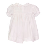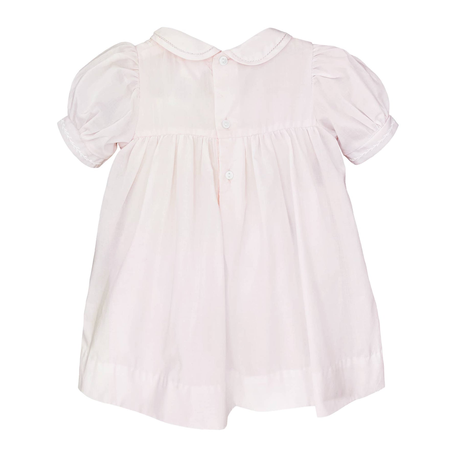Our traditional and classic pink dress for baby girls makes a beautiful outfit for family photos and special occasions. Featuring heirloom-quality handcrafted details like pintucks, hand embroidery, French hand-sewing, and a decorative bridging stitch on the collar this piece is sure to become a treasured keepsake. The lightweight batiste fabric keeps little ones cool and comfortable and is easy to care for – just machine wash and tumble dry. 65% Polyester/35% Cotton