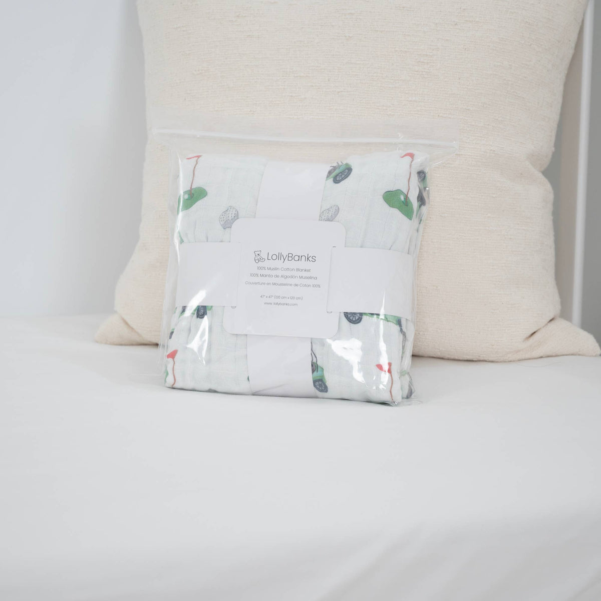 Golf A Round Sports Theme Baby Toddler Muslin Blanket