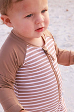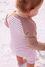 Long Sleeve Rash Guard Swim Romper Shortie | Sandy Stripes