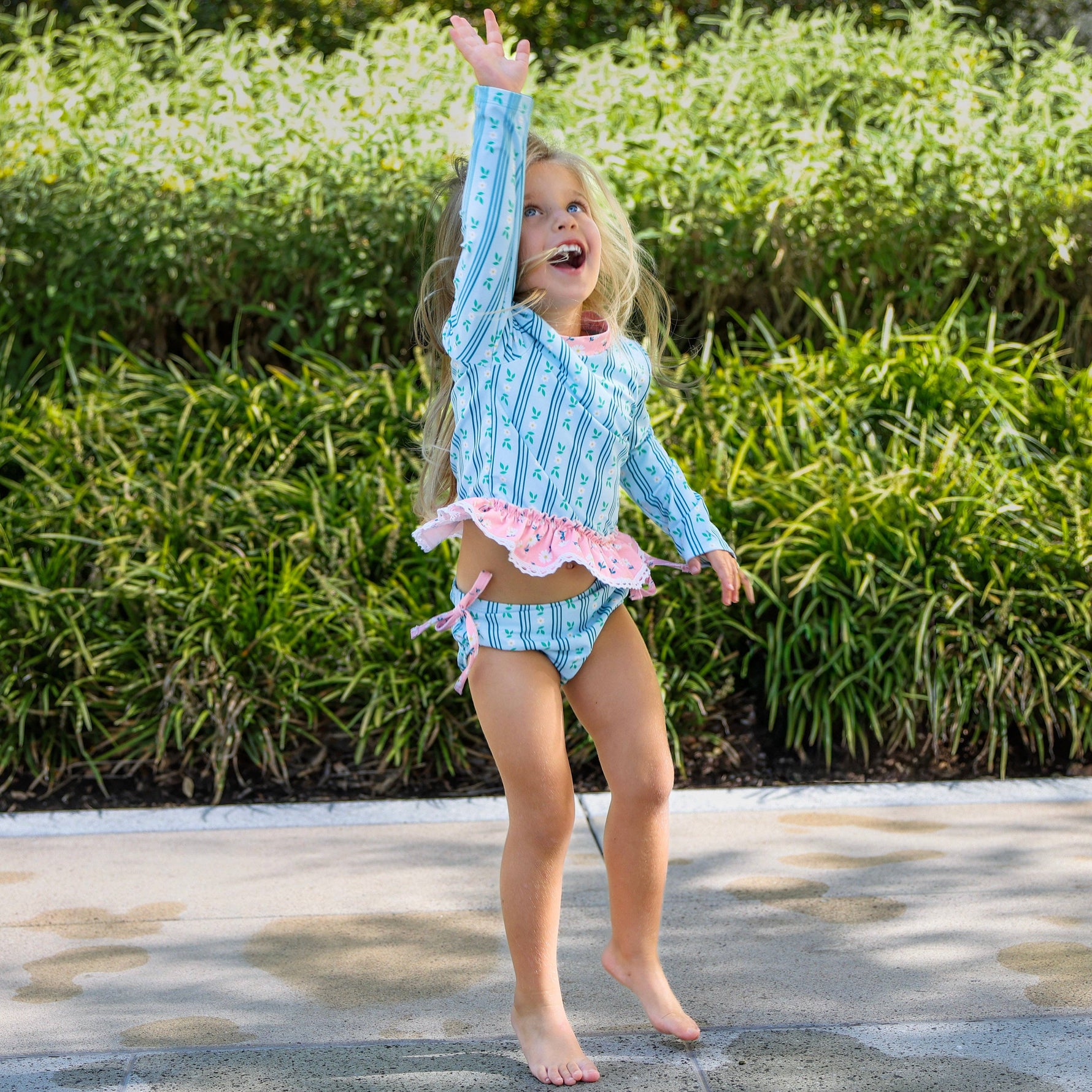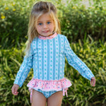 Make a splash this summer with our Rashguard Tankini featuring cheerful daisies! Designed for active girls, this two-piece swimsuit offers sun protection and comfy coverage, perfect for endless days of fun in the water. Lightweight and quick-drying, it keeps your little one cool and protected while they play, swim, and explore. Bright, playful, and practical—this tankini brings sunshine and smiles to every splash! * True to size * 95% Polyester 5% Spandex * UPF 50 * 3M-12Y * Two piece * wash delicate; lay flat to dry