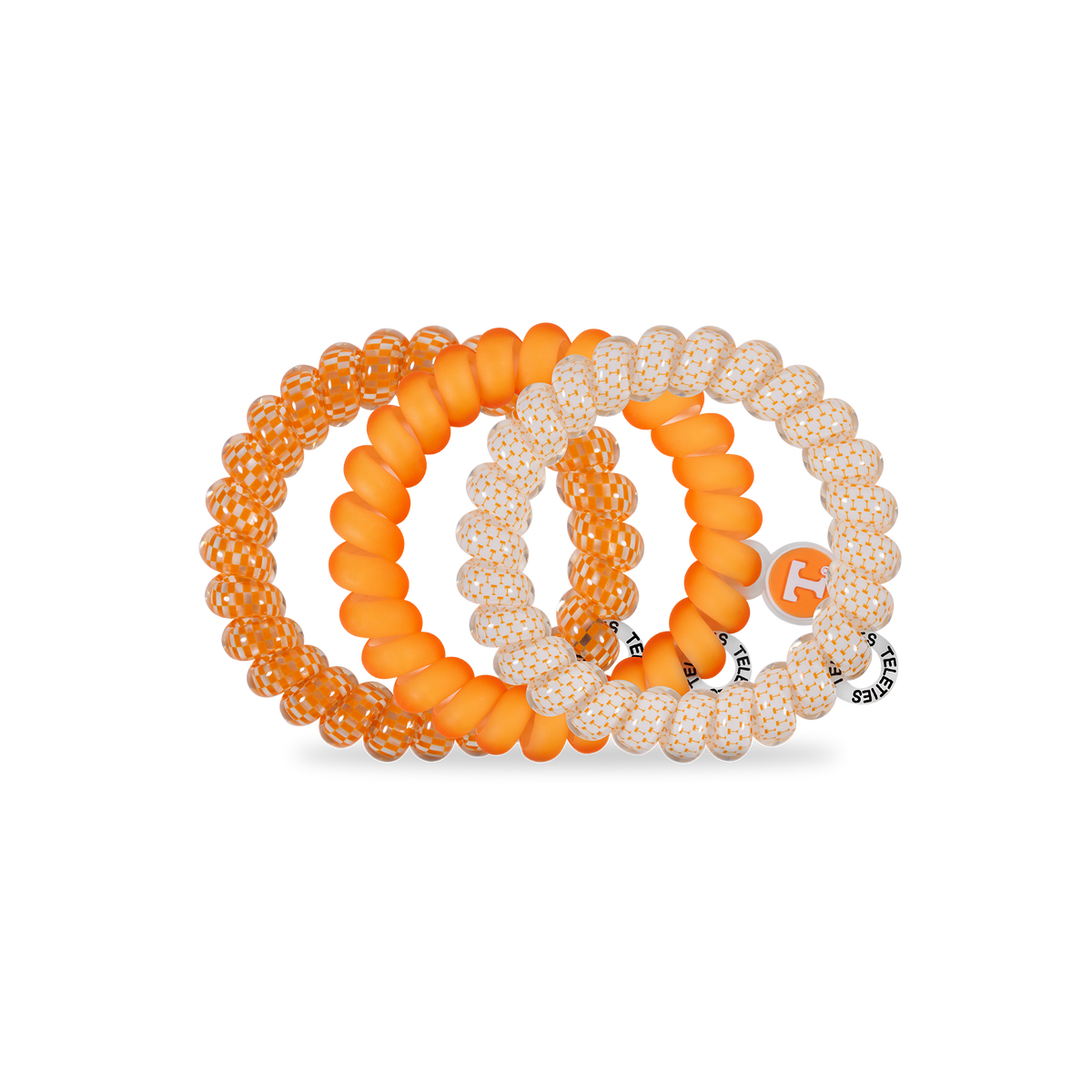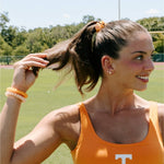 Cheer on the University of Tennessee in style with the TELETIES, Go Vols! Large Hair Ties in White and Orange offer a strong grip without damage, doubling as a chic wrist accessory when not in use. Your new favorite hair essentials all year round. Shop your favorite University of Tennessee hair accessories now! Go Vols!