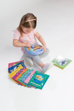 "Mom" and "Dad" storytellers narrate in calming voices and sing songs to relax young minds. Young readers can follow along with the matching books and enjoy the colorful illustrations, or carry the electronic reader and listen to stories on the go. the electronic story reader requires no internet and is ready to play wherever you go.