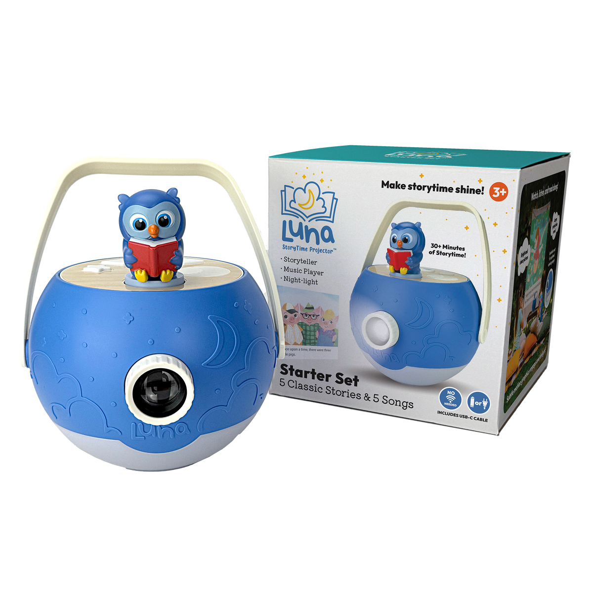 Turn bedtime into a magical experience with the Luna StoryTime Projector! This easy-to-use projector brings stories to life, casting beautifully illustrated scenes onto the ceiling or walls to immerse little ones in a world of wonder. With easy to navigate control buttons, children 3+ can operate it independently. The digital delivery allows for more content, crisp pictures, clear sounds, and immediate play- Projects up to 8 feet! Additionally, no Wi-Fi, downloads, or apps are required!