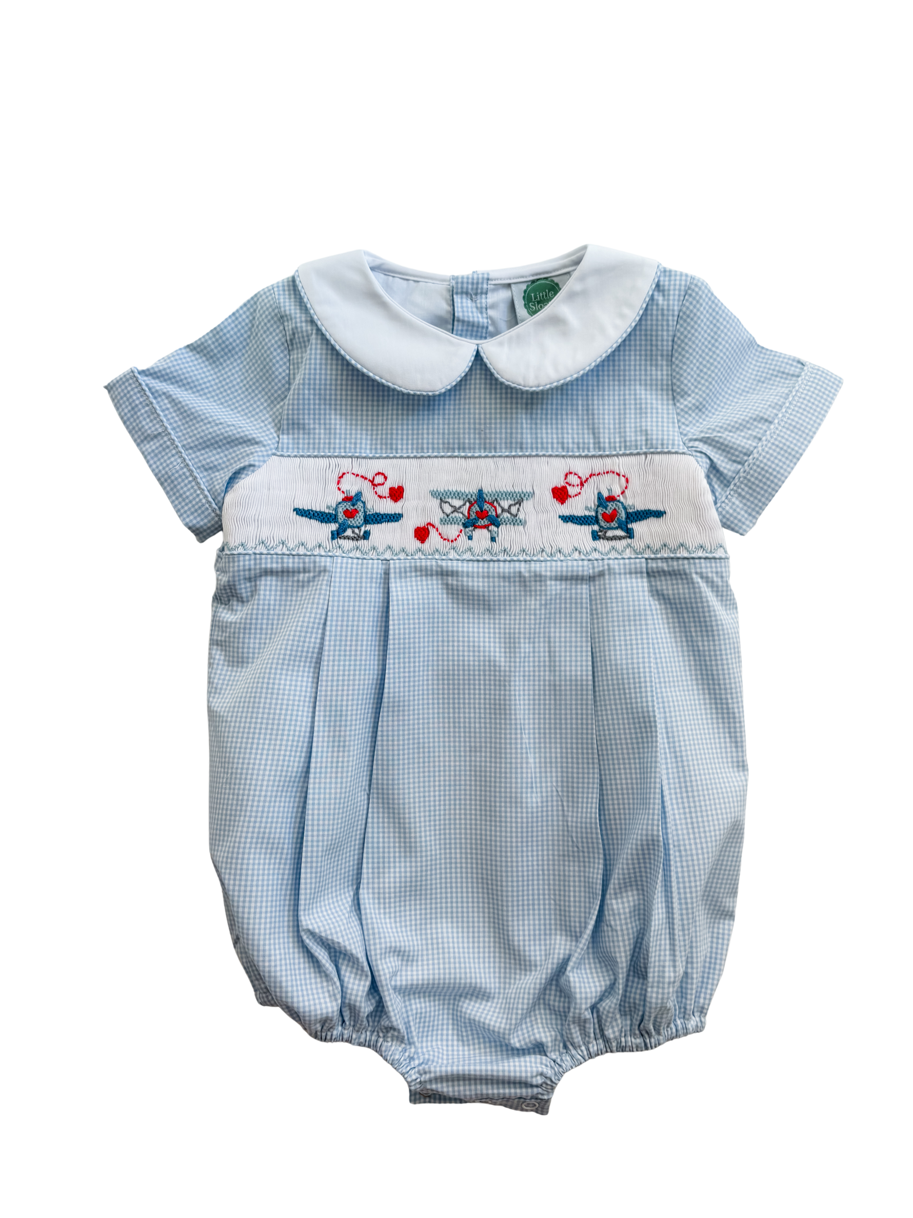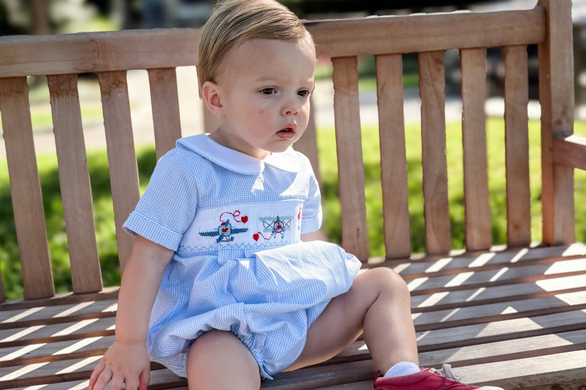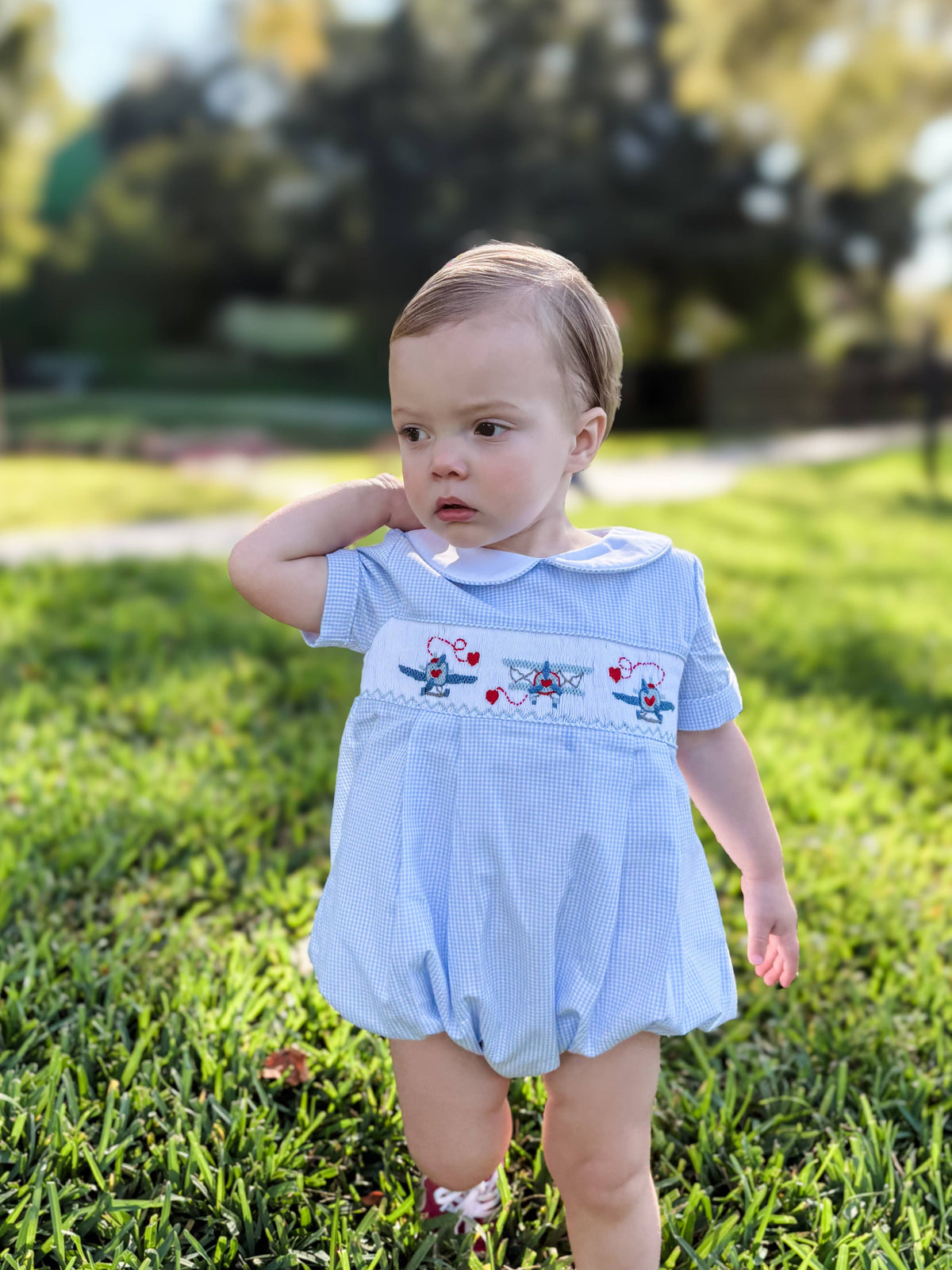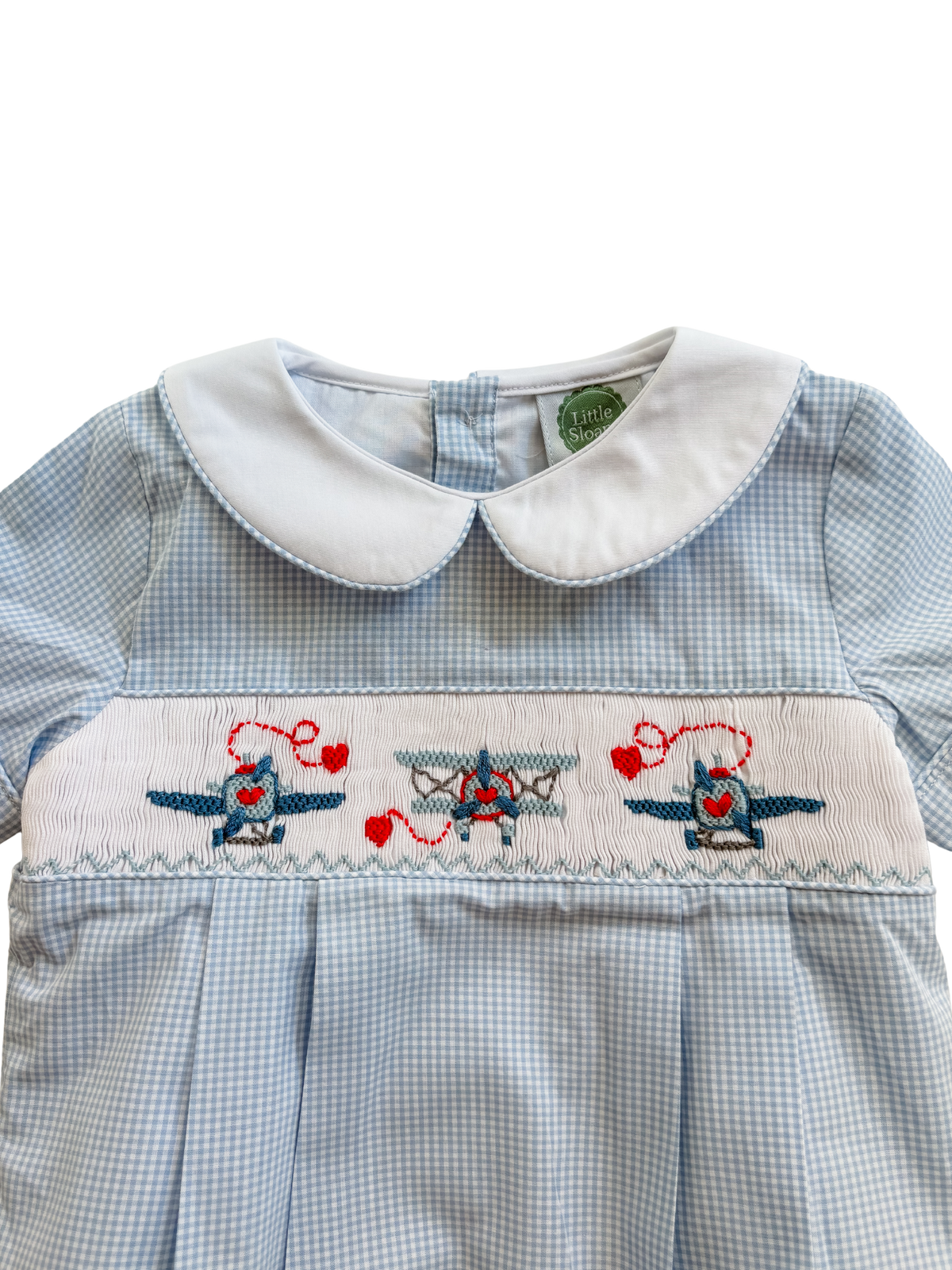 Love takes flight. The Wright Collection blends vintage aviation charm with subtle Valentine’s Day details - airplanes and heart trails for your little pilot. Classic, playful, and adventure-ready, it’s the perfect style for classroom parties, family celebrations, and every high-flying moment in between. * Buttons in back and snaps in stride * 100% cotton * Fully lined