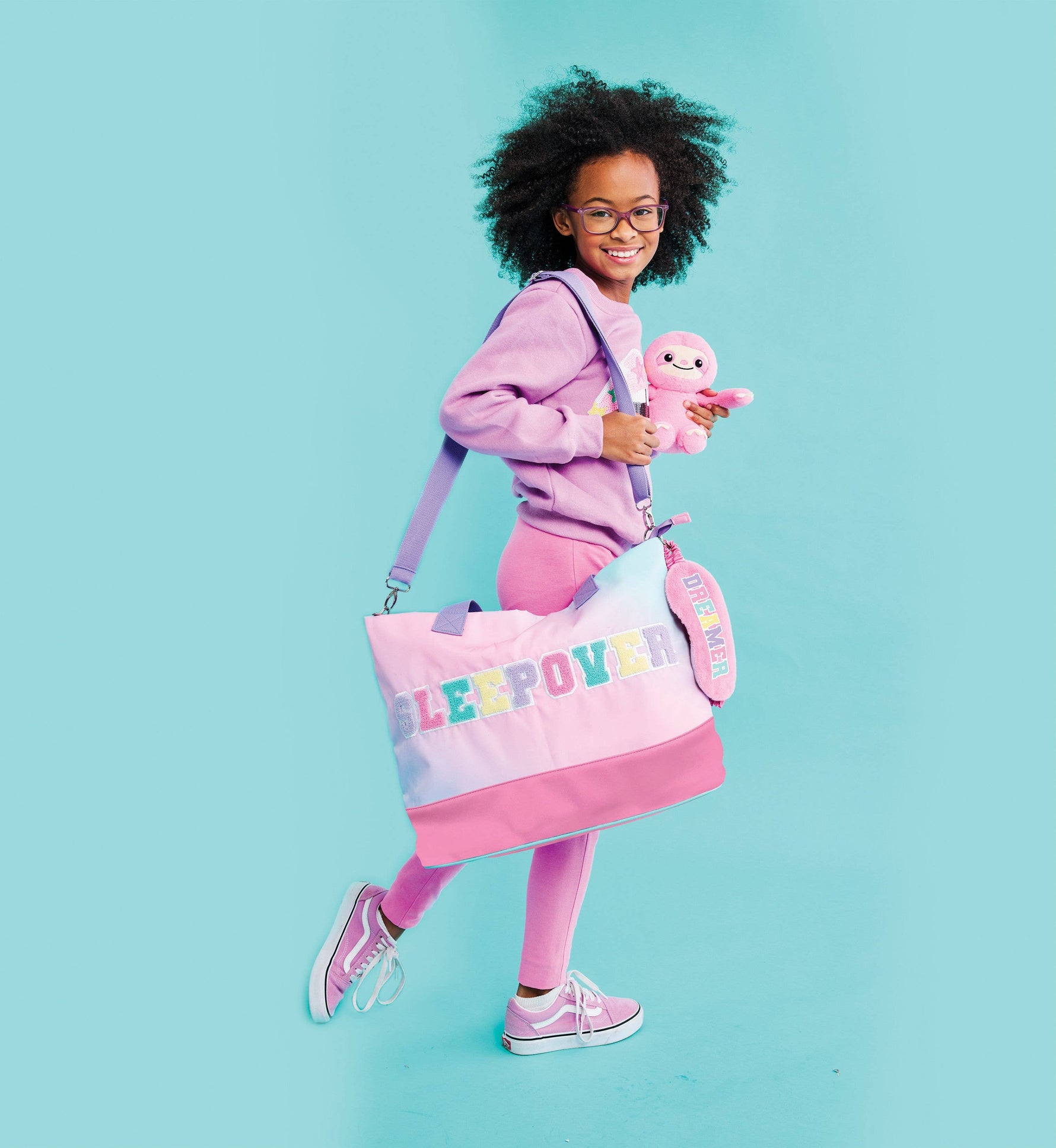 The Sleepover Weekender Bag & Eye Mask Set from Iscream is a must-have for your kid's next slumber party or family vacation. Infused with fun and creative designs, this set is sure to bring a smile to your child's face. The weekender bag provides ample space for all their essentials, while the matching eye mask ensures a peaceful sleep. Our brand's commitment to making the ordinary a little more extraordinary is evident in this vibrant and practical set.