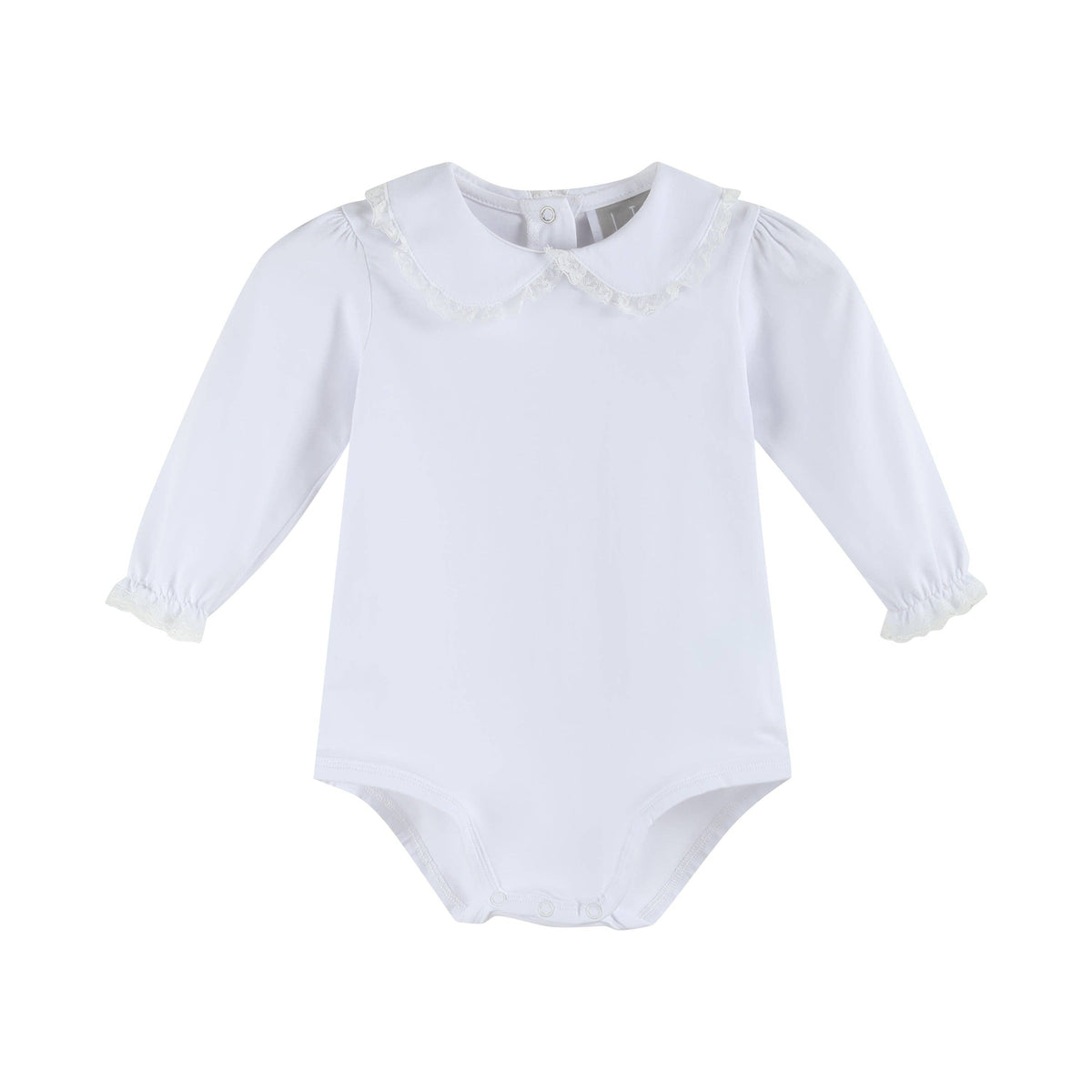 White Lace Collared Girls Long Sleeve Bodysuit Romper